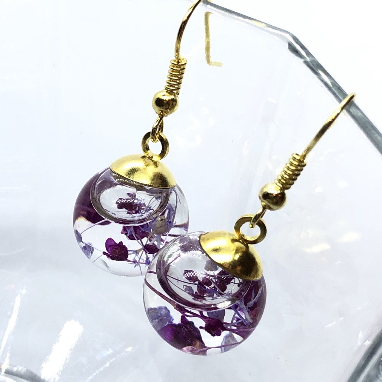 ハーバリウムピアス_カスミ草(紫/薄紫)アレルギー対応